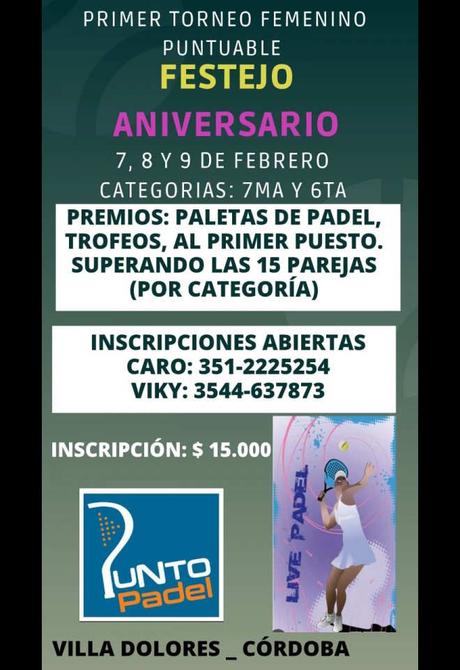 »» Evento: TORNEO FEMENINO PUNTUABLE FECHA 1- CATEGORIAS 6 y 7 »» Localidad: Villa Dolores »» Fechas: 07/02/2025 al 09/02/2025